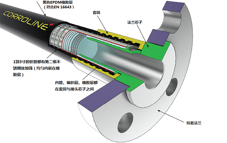 Corroline GP 特氟龙软管总成结构图(非翻边法兰)