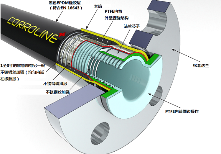 Corroline GP 特氟龙软管总成结构图(扣压翻边法兰)