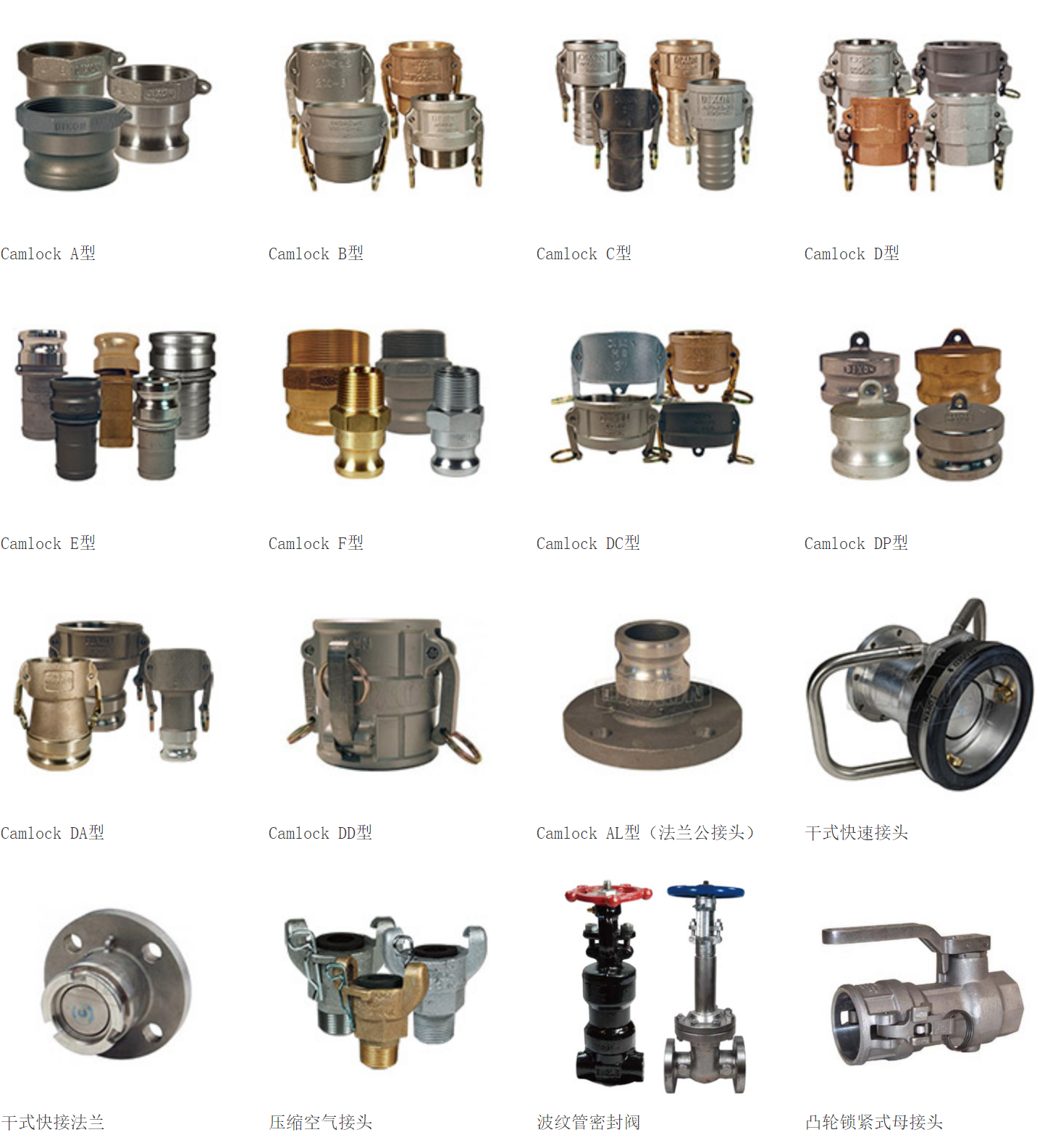 美国DIXON(蒂柯圣)集团的创立可以追溯到100多年前,悠久的历史和对高品质产品的不懈追求造就了DIXON在工业管接头领域的优秀品质。现今DIXON工业集团的客户遍布全球各地,是国际公认的软管接头、阀门、及辅助部件的有名的生产销售集团之一。 DIXON的产品广泛应用于石油、化工处理、精炼、食品加工、医药、流动罐车、采矿、消防、建筑、核能和多种制造业。