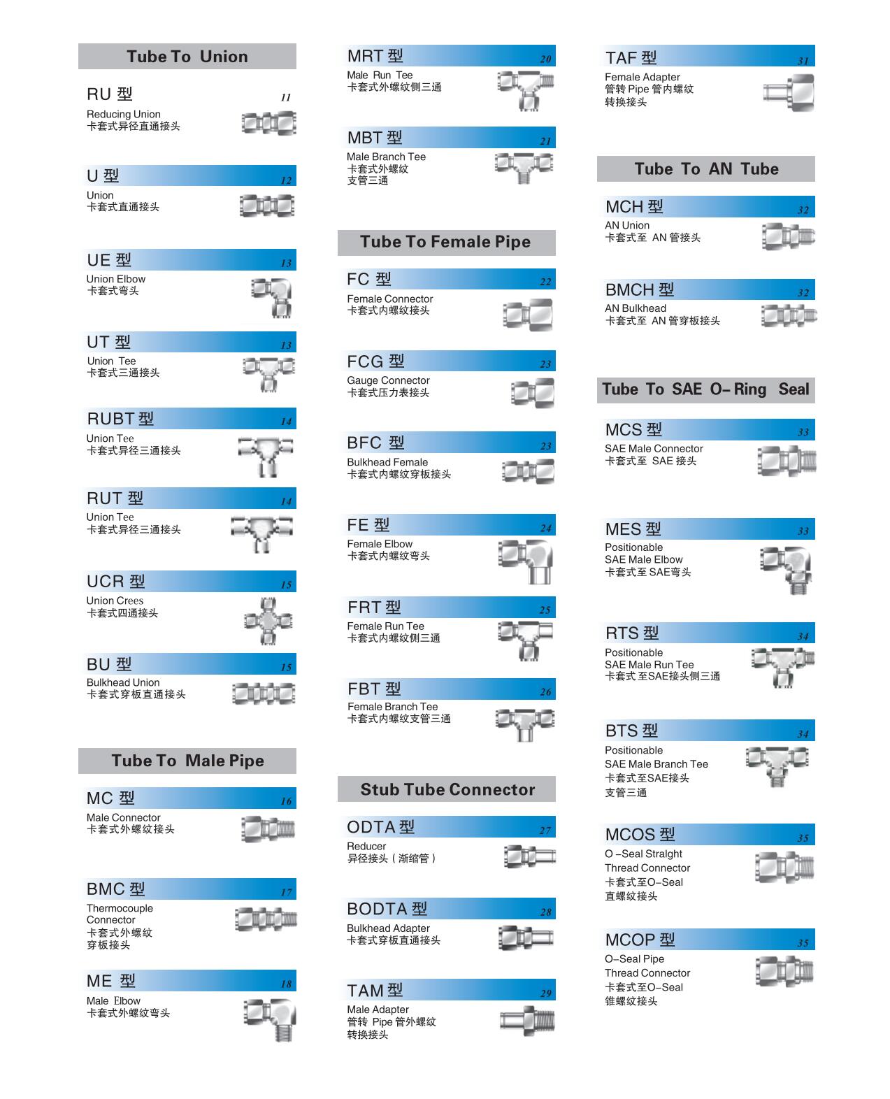 不锈钢卡套式管接头系列