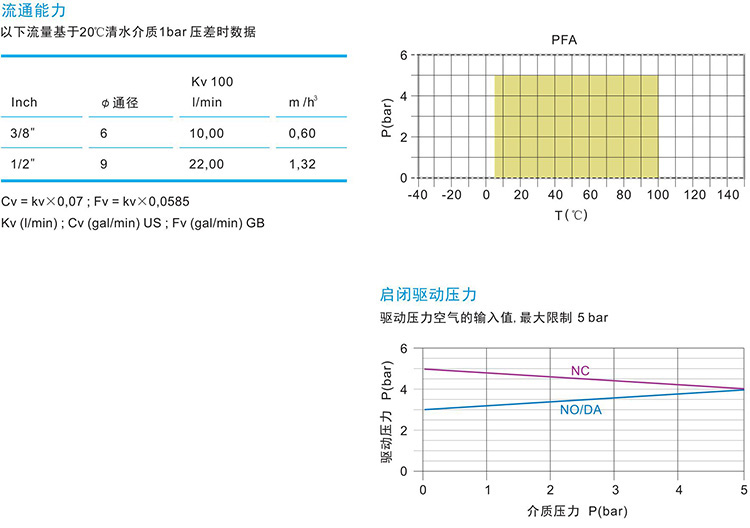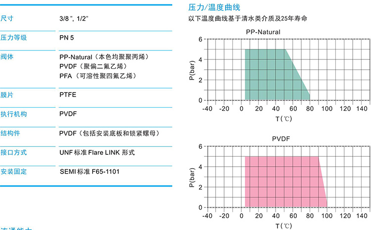 *耐受温度5...100℃(需对应阀体材质的耐化耐温特性选用)*阀体锥形流道和接头一体结构,液体残留量极小,具备不同介质的置换特性