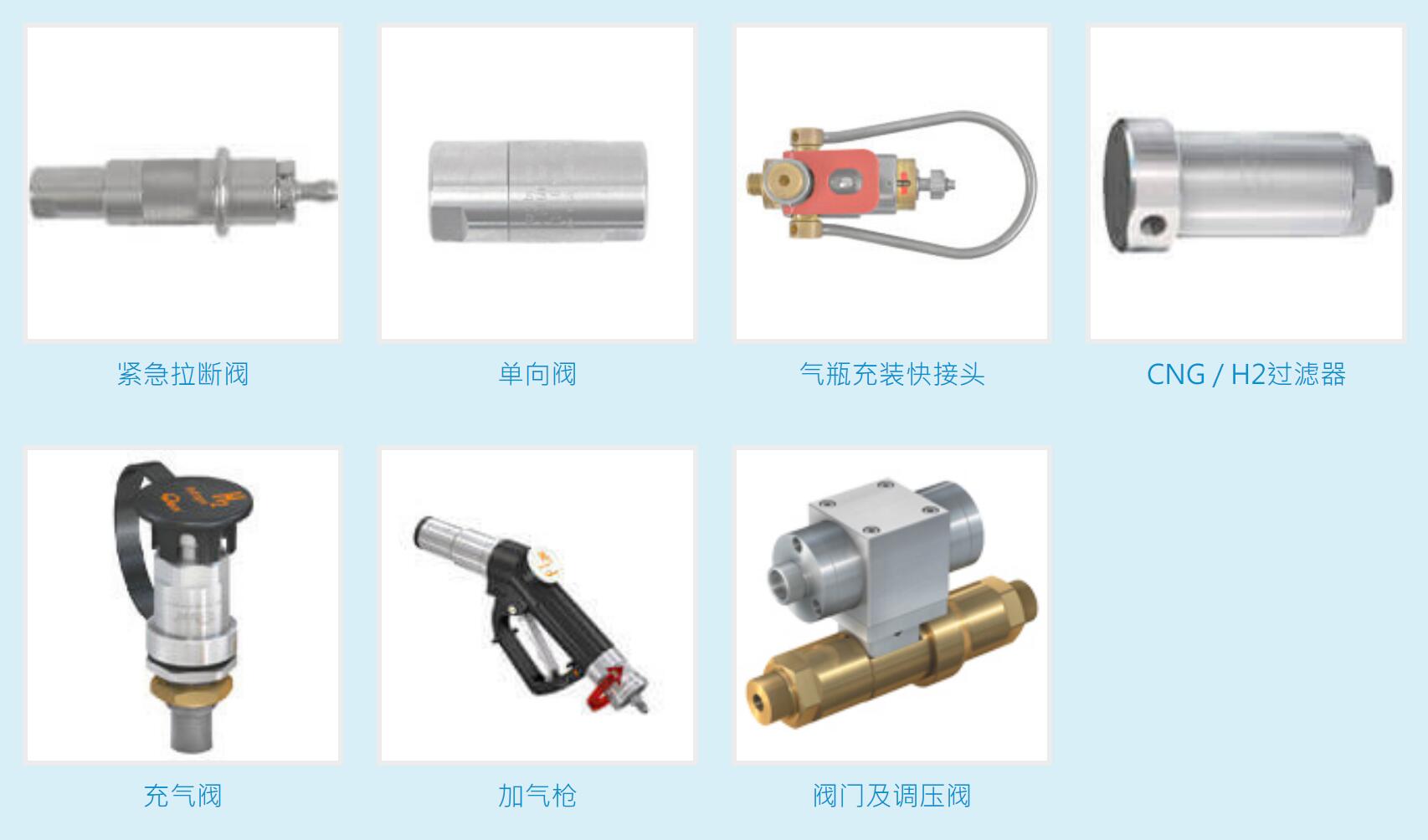 提供一整套氢燃料加注的产品方案,其中包括:氢气车辆上用加氢嘴、单向阀到加氢站上用加氢枪、充气软管、拉断阀和过滤器。WEH® 70 MPa 技术对于氢气作为未来替代燃料发展过程中起着关键性的作用。大多数加氢站上使用WEH®产品, 是鉴于许多汽车OEM厂商在使用WEH® 的氢气部件,并非常信赖WEH® 这个品牌。