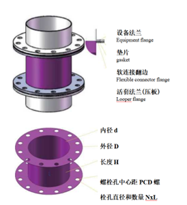 应用:主要应用于粉体行业,法兰软连接两端自带翻边,通过两片法兰压板压在中间。 适用于对密封可靠性要求高和不需要经常拆卸的位置。