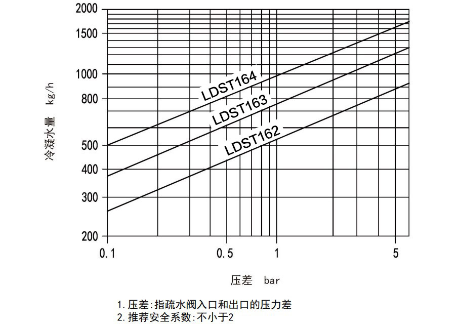 注意:不要在超过最大压差的条件下使用疏水阀,否则会出现冷凝水积存。