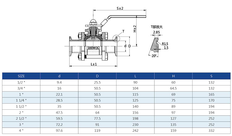 卫生级不锈钢三片式手动球阀