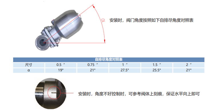 1. 独创的安装方向点设计,实现前所未有的自排尽能力