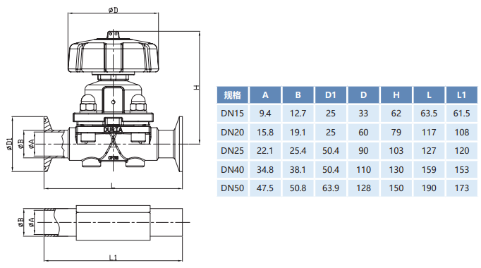 卫生级不锈钢手动快装隔膜阀应用:广泛适用于卫生级的酿酒、乳制品以及饮料等食品工业,以及无菌工况的制药领...